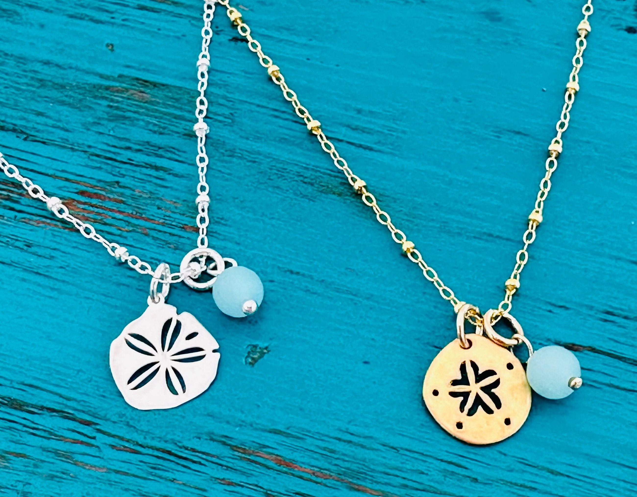 *Please note the gold sand dollar charm is 14K gold plated, sterling silver.