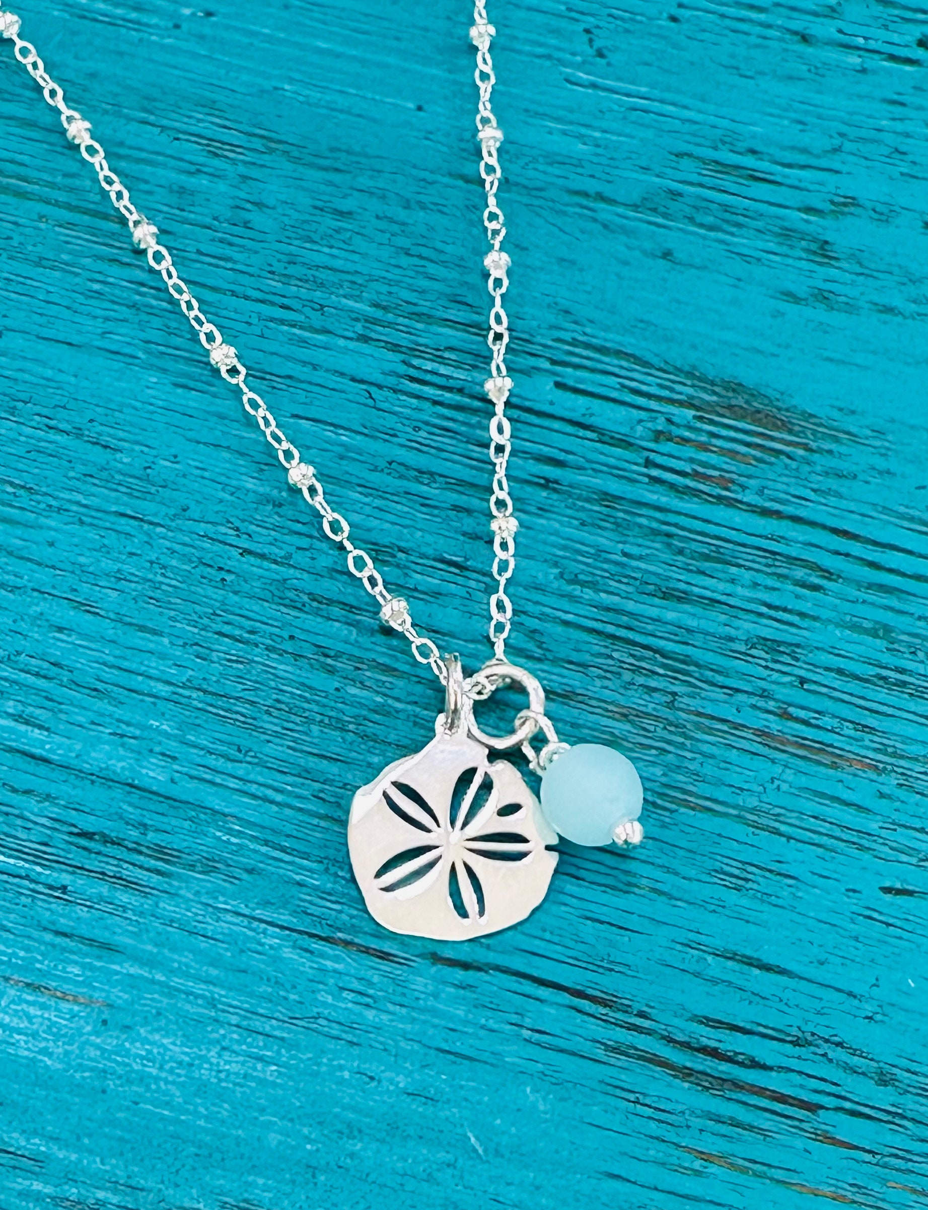 Beautiful, Sand Dollar and Sea Glass Necklace