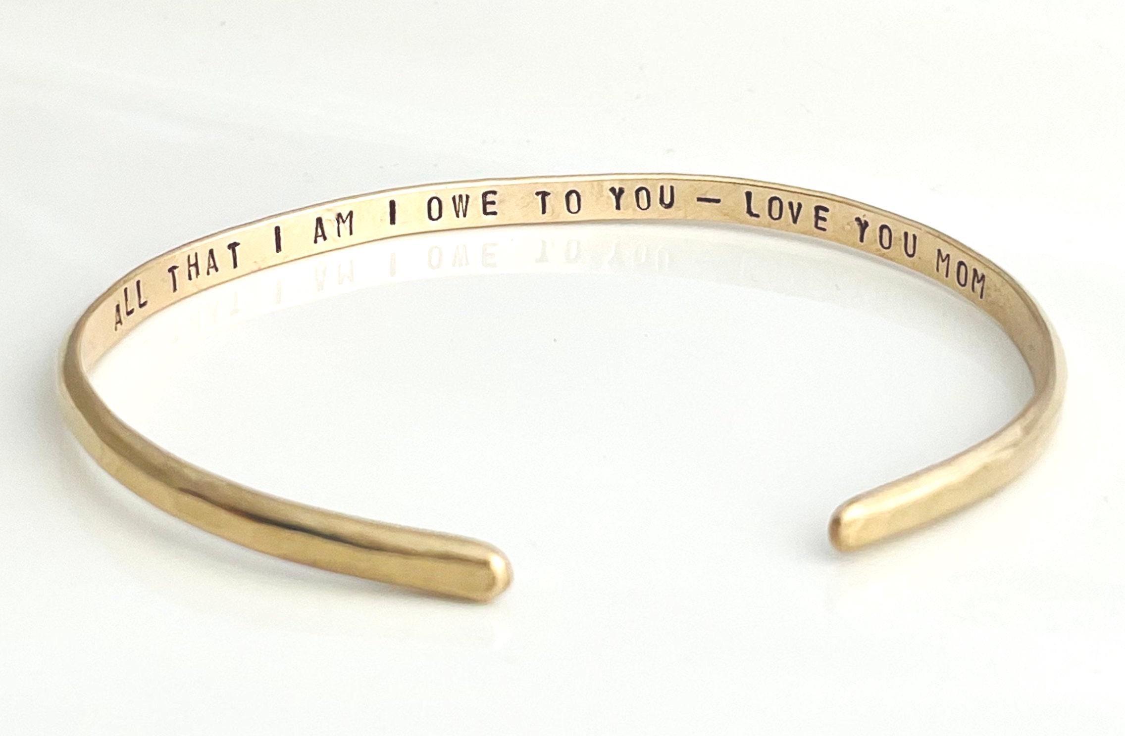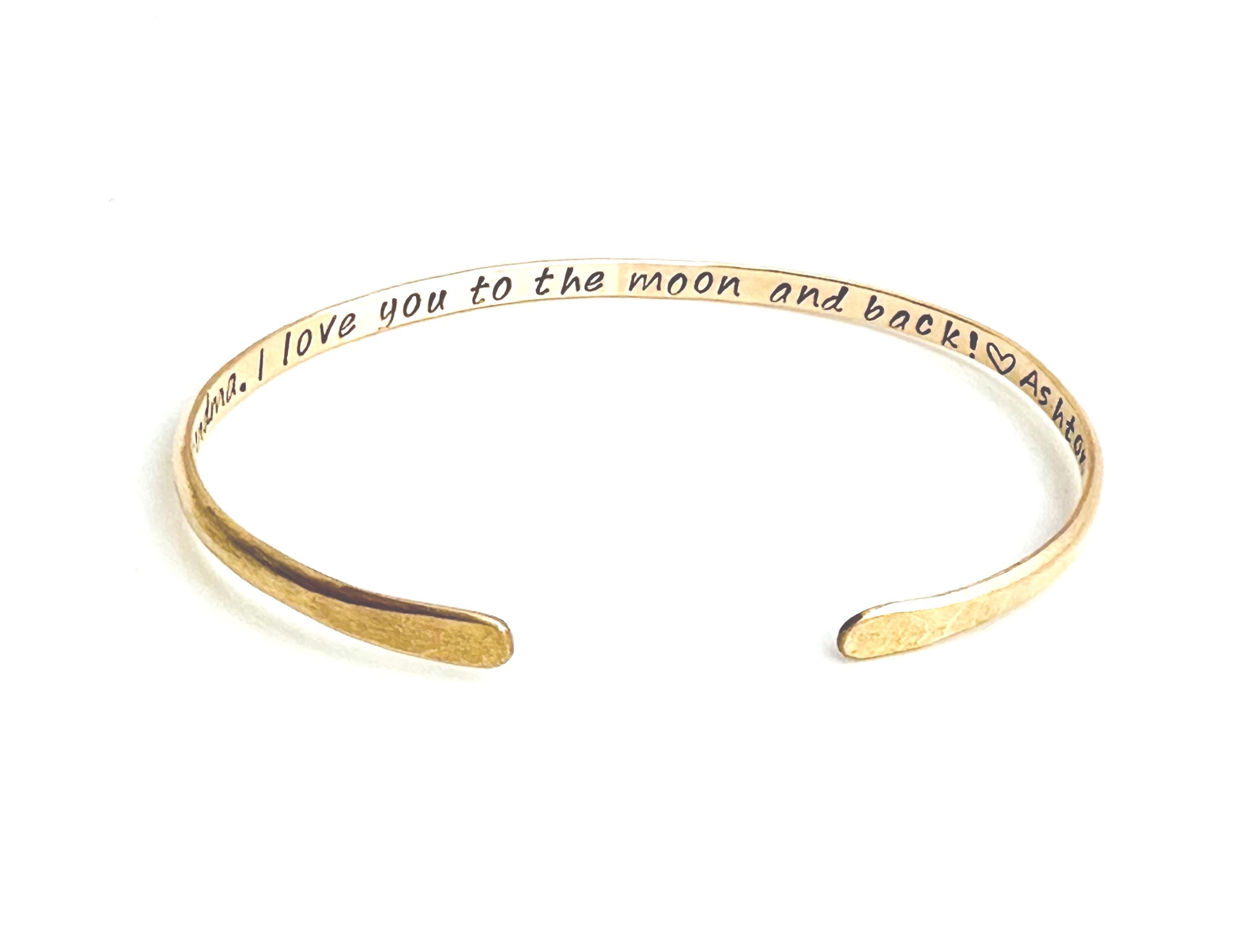 This bracelet makes a wonderful, sentimental and special gift. Have your bracelet stamped with "I love you to the moon and back" or choose your own personal, statement including dates!
