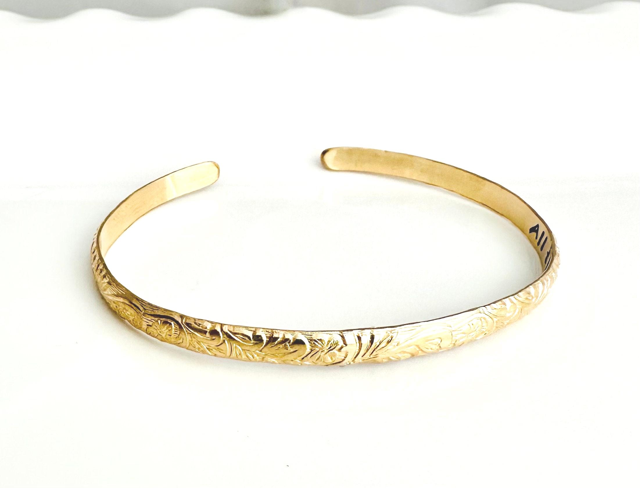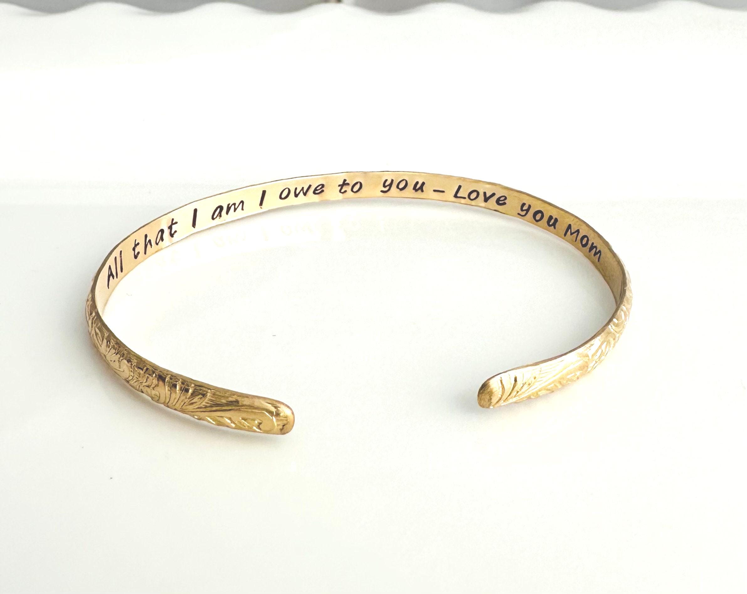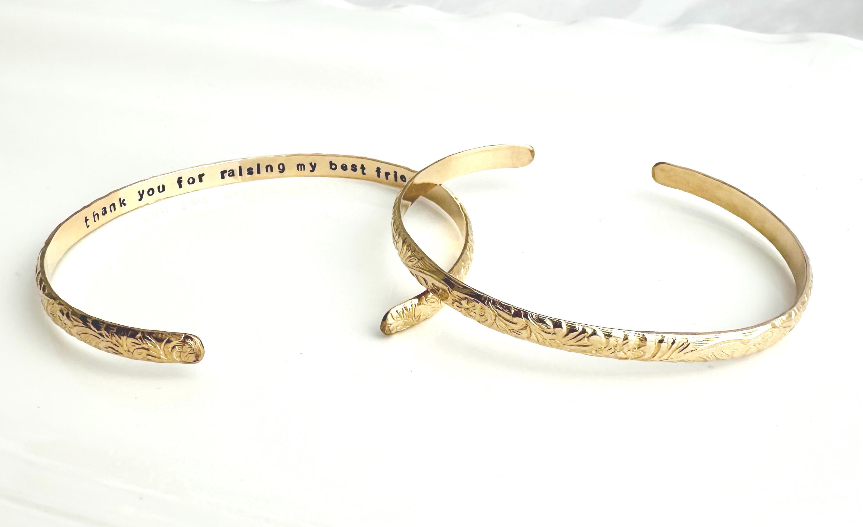 These bracelets are completely hand made by hand cutting the wire to size, hand stamping your special inscription and finishing and polishing the finished cuff.