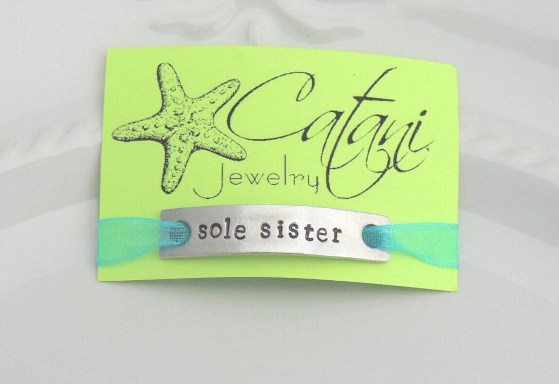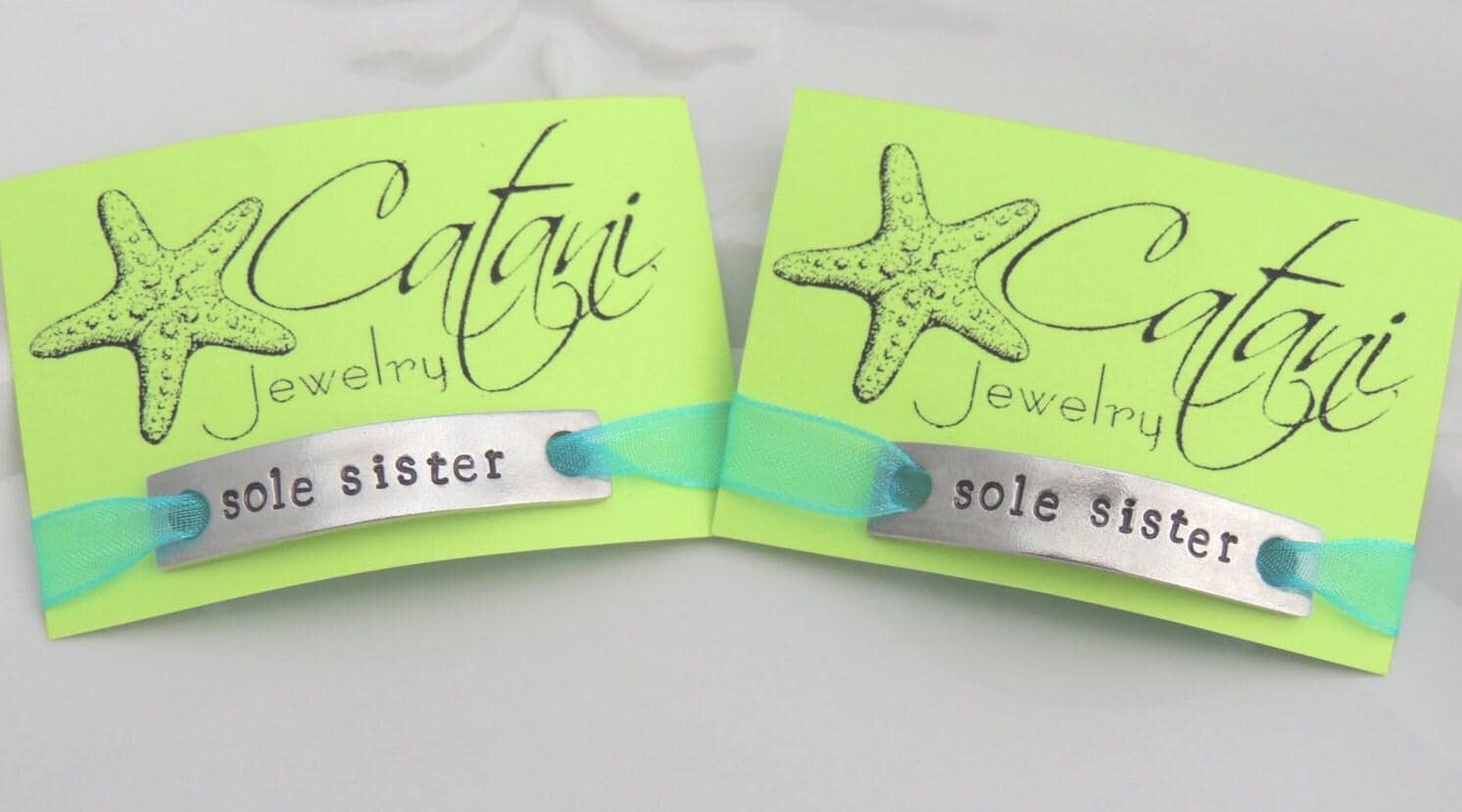 These two shoe charms are stamped with "sole sister". You can also choose your own personalized saying as well (up to 12 characters).