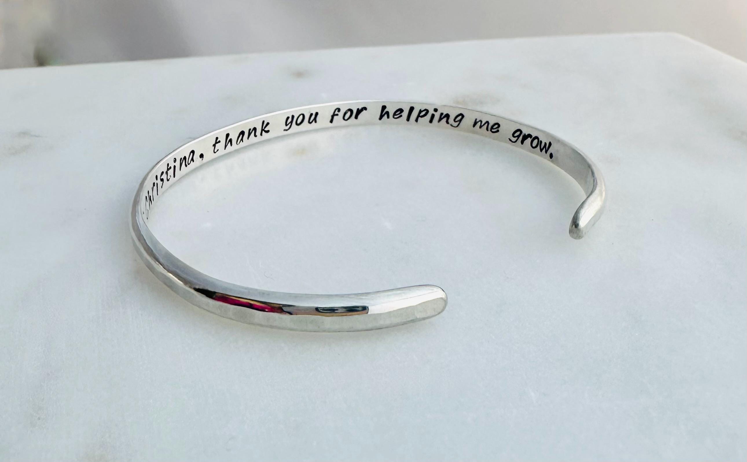 Have your bracelet stamped on the inside with a personal saying, inspirational quote, names and/or dates.