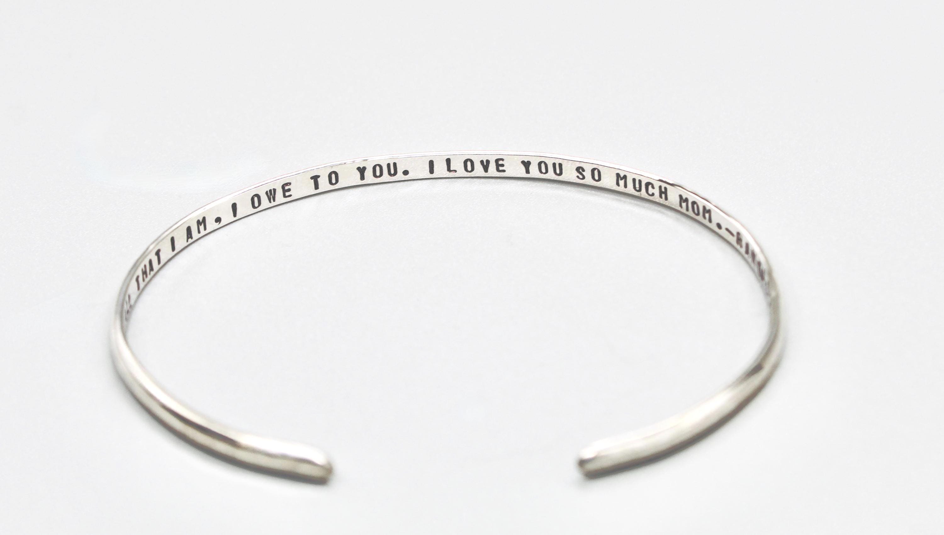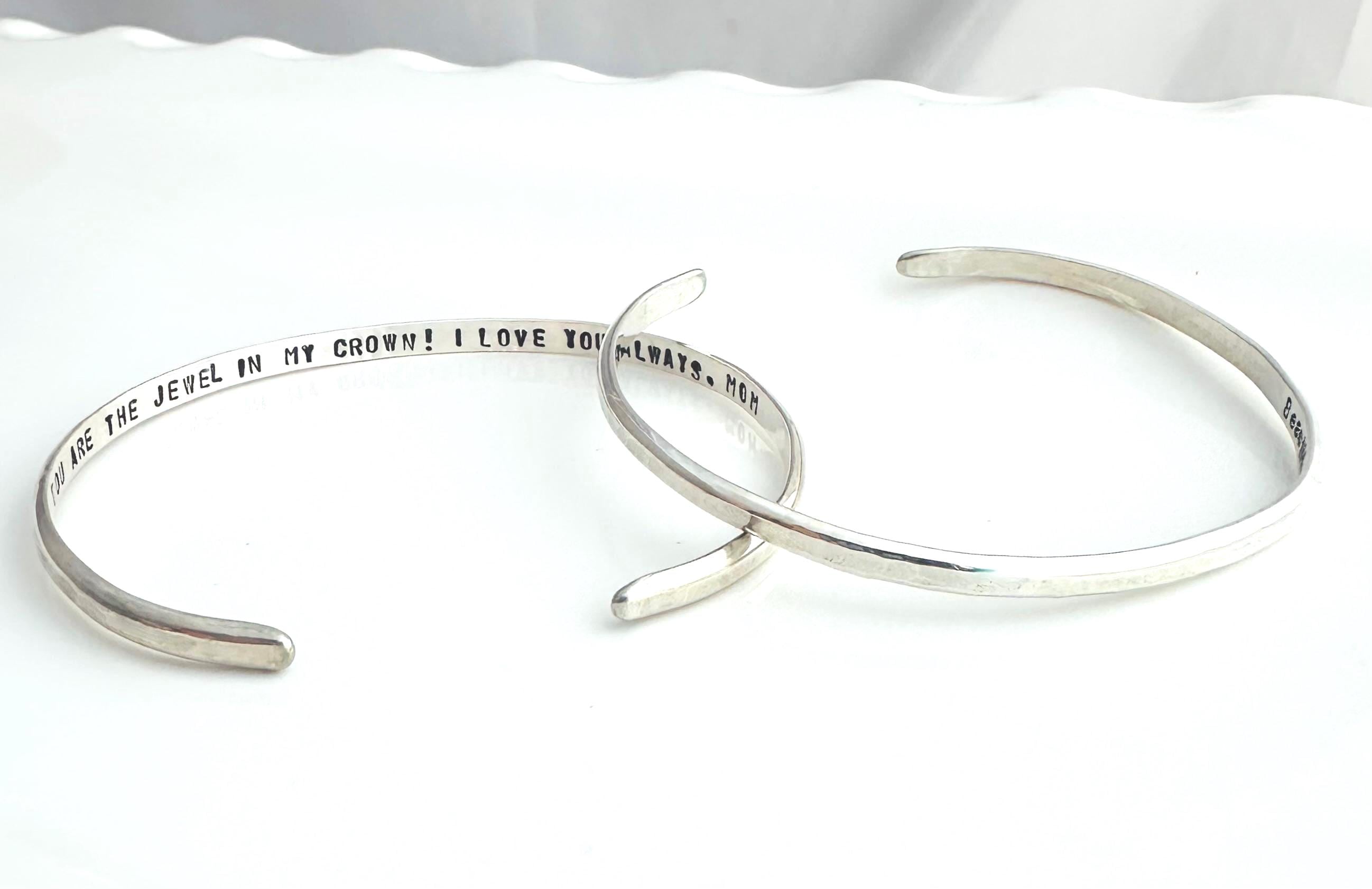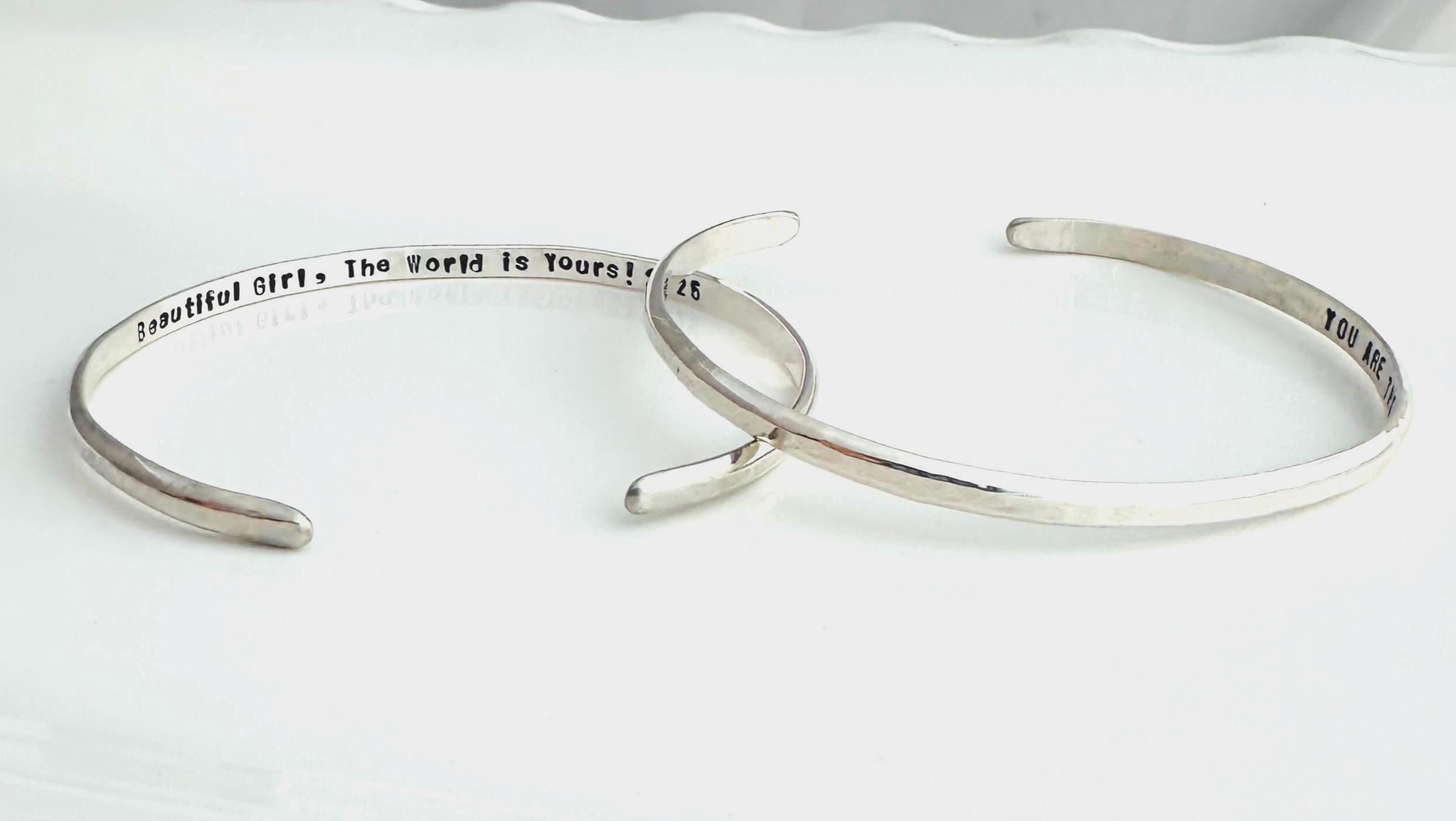 Personalized Sterling Silver Cuff Bracelet - Hand Stamped Custom Jewelry - Minimalist Gift for Her