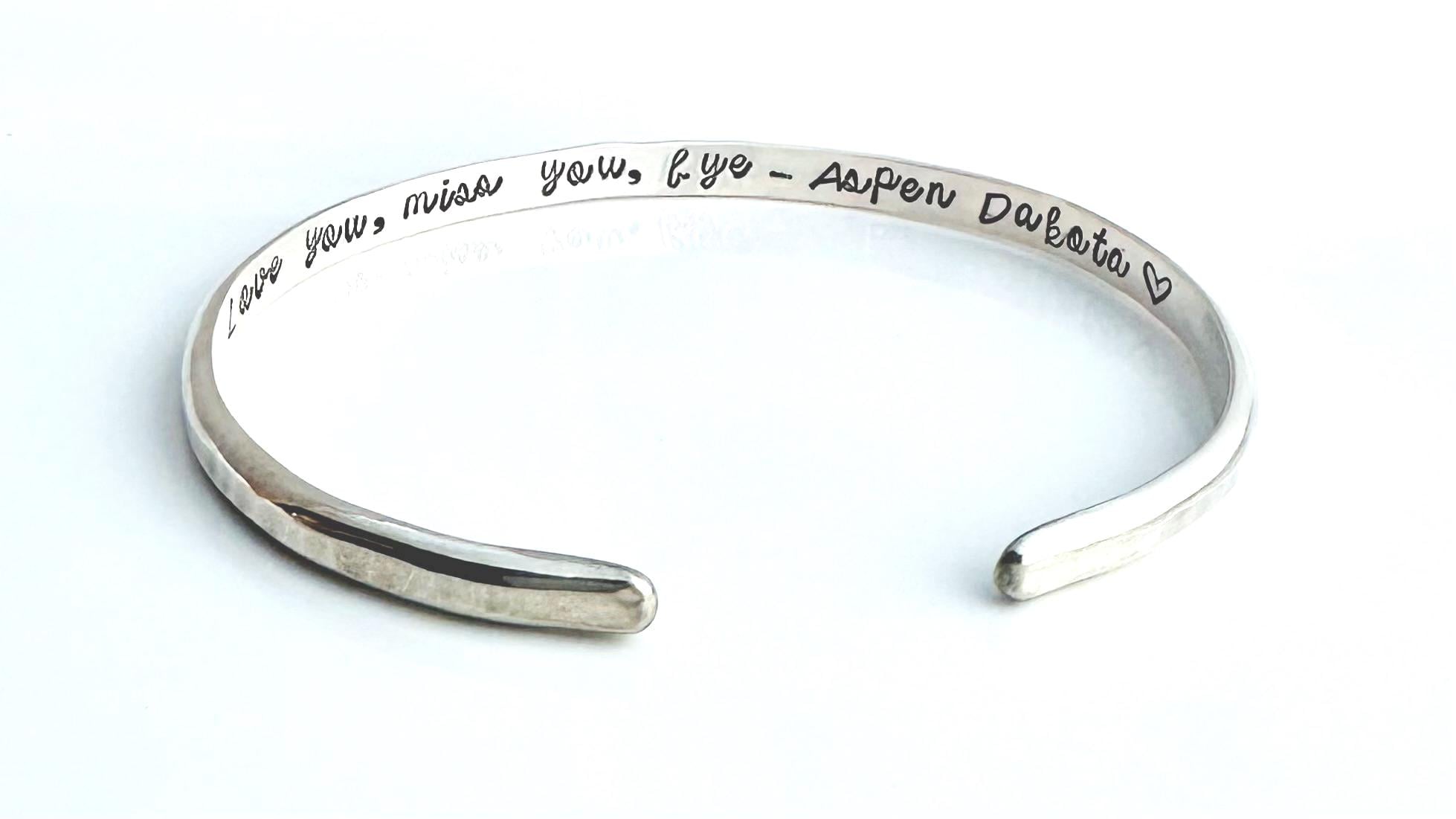 Have your bracelet stamped on the inside with a personal saying, inspirational quote, names and/or dates.