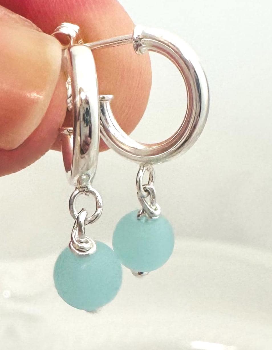 Sterling Silver Hoop Sea Glass Earrings