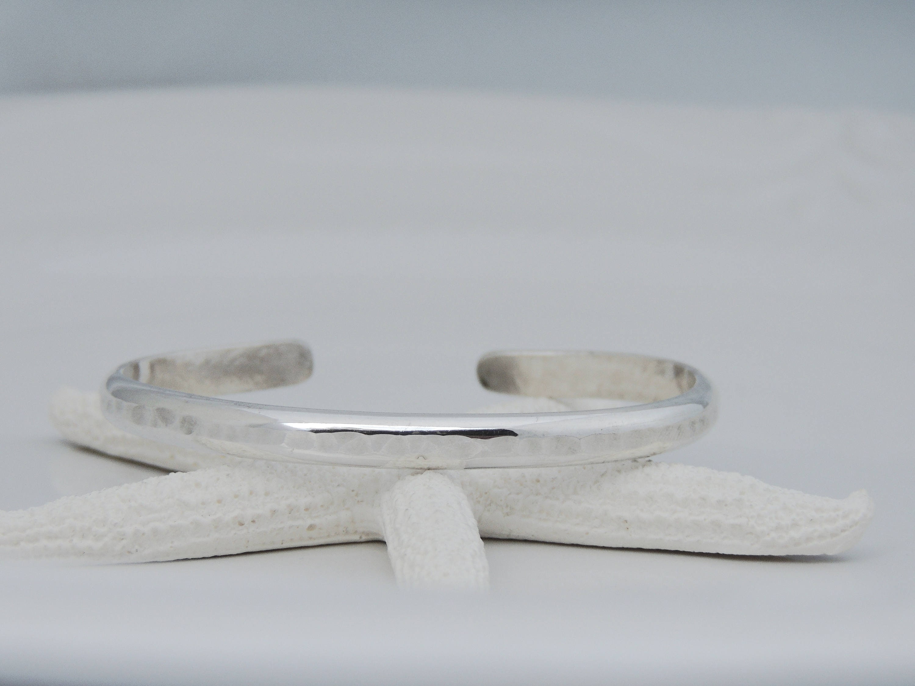 These bracelets are completely hand made by hand cutting the silver, hand hammering, hand stamping and polishing the finished cuff.