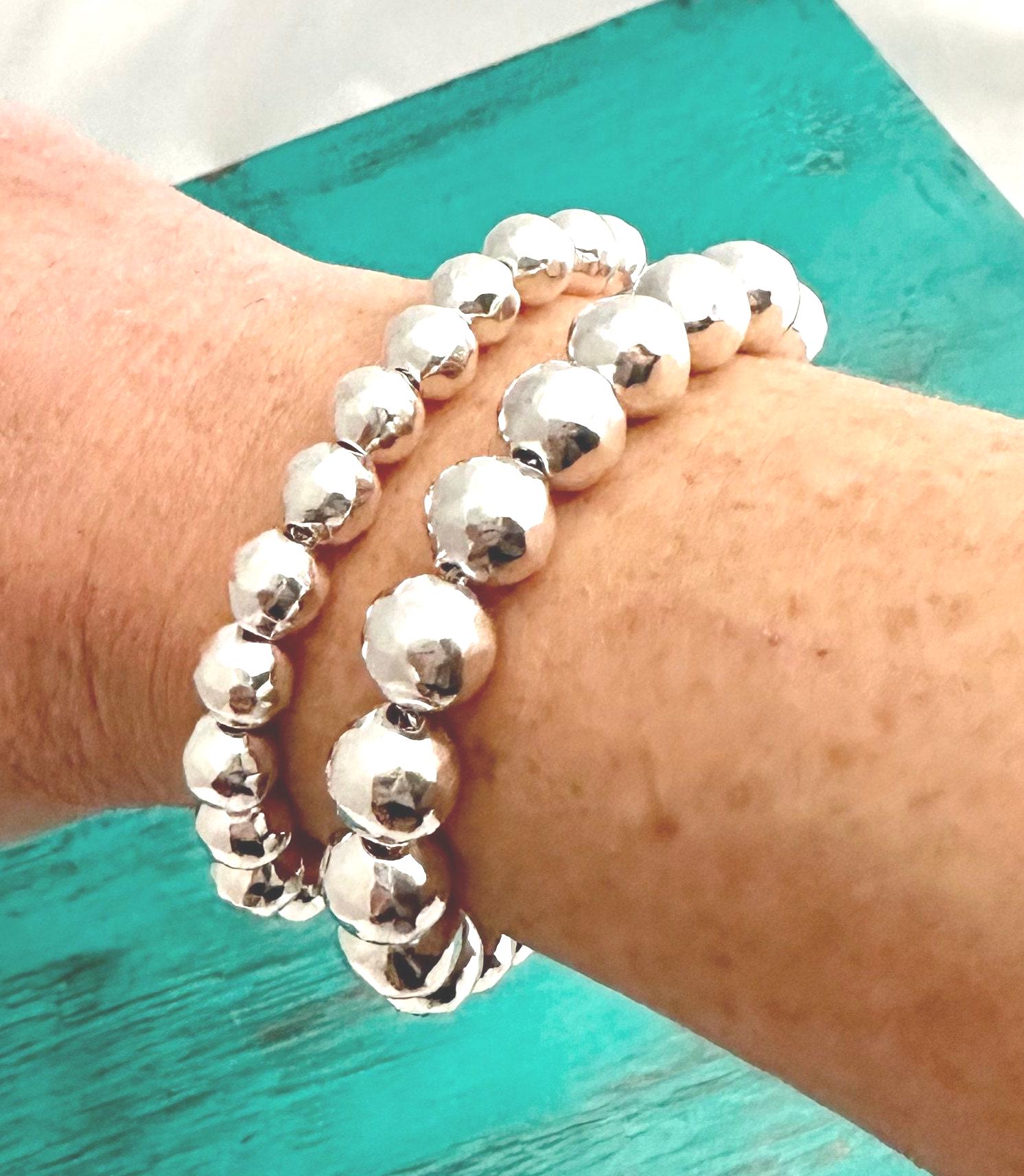 This beautiful sterling silver hammered ball bracelet is stunning! It features sterling silver hammered beads strung on a durable sterling silver chain. The sterling beads are made of thick .925 sterling silver and hammered, giving this bracelet a sparkling finish. All bracelets are handmade by me in my VA studio.
